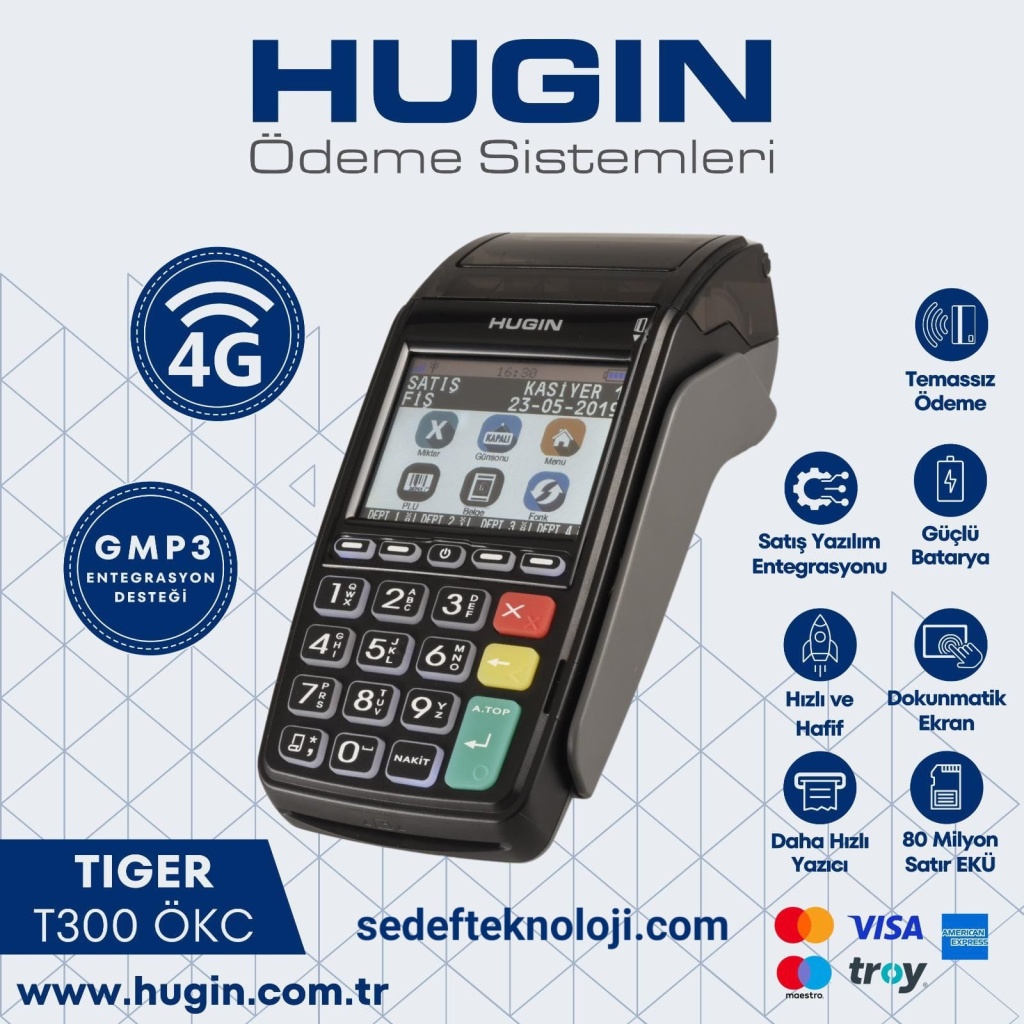 Hugin Tiger T300 4G yazar kasa POS tarafından desteklenen bankalar: Akbank, Al Baraka, Anadolubank, Denizbank, Fibabanka, Garanti BBVA, Halkbank, Kuveyt Türk, Şekerbank, QNB Finansbank, TEB, Türkiye Finans, Türkiye İş Bankası, Vakıfbank, Vakıf Katılım, Yapı Kredi ve Ziraat Bankası.
